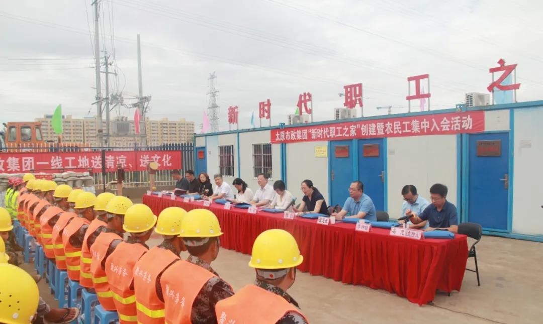 8月7日,太原市政建設(shè)集團(tuán)有限公司“新時(shí)代職工之家”創(chuàng)建暨農(nóng)民工集中入會活動(dòng)在集團(tuán)公司水馬路工地隆重舉行。市人大常委會副主任、市總工會主席張磊,省總工會組織部副部長朱莉,市總工會黨組成員、副主席康衛(wèi)青,市總工會黨組成員、副主席曹劍及相關(guān)部室負(fù)責(zé)人應(yīng)邀出席。集團(tuán)公司黨委書記、董事長郝東輝,黨委副書記、副董事長、總經(jīng)理溫慧武,黨委委員、監(jiān)事會主席、工會主席馮忠,副總經(jīng)理王志強(qiáng)及職工、農(nóng)民工代表共230余人參加了活動(dòng)。