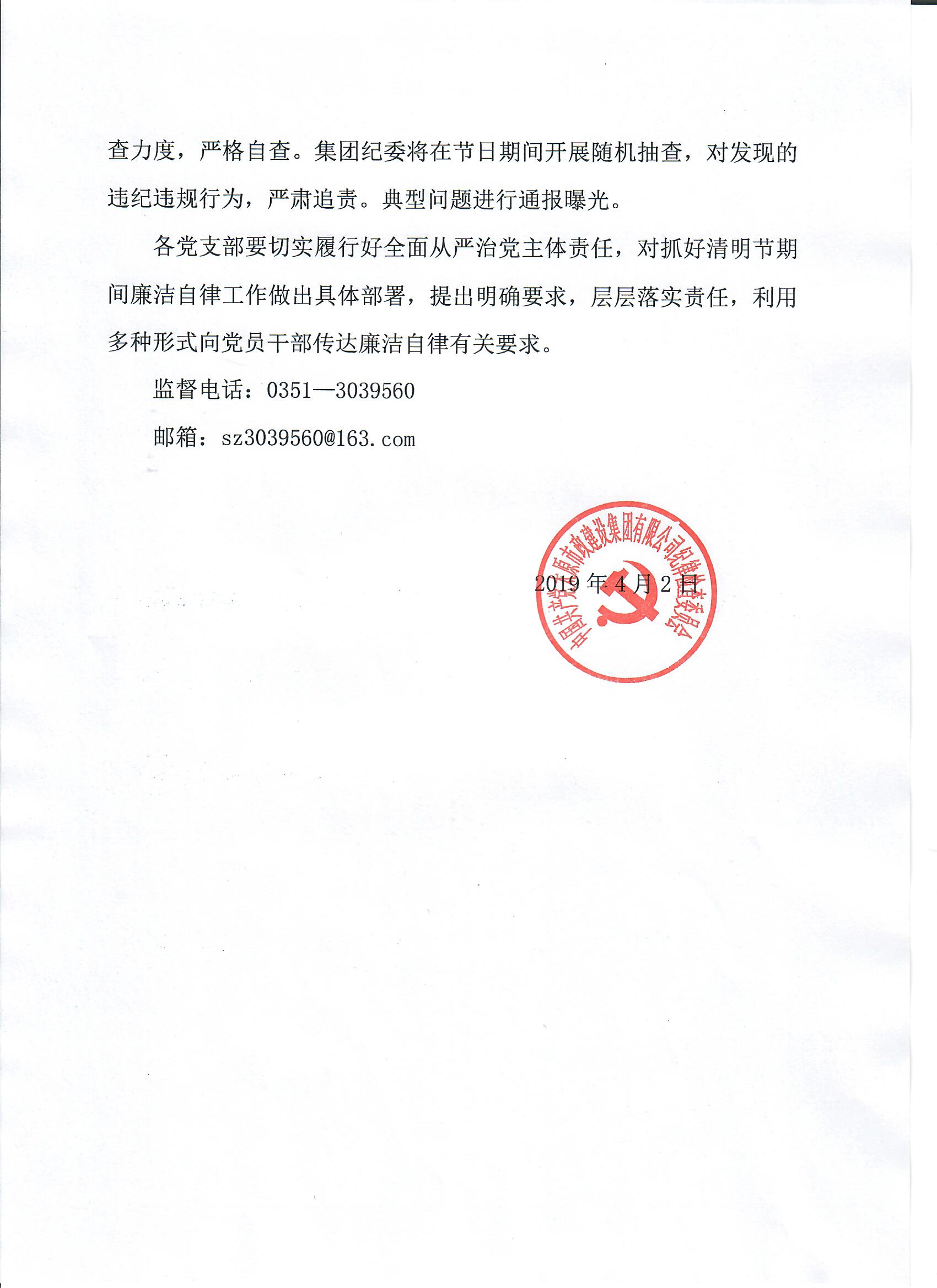 太原市政建設(shè)集團有限公司關(guān)于清明節(jié)期間廉潔自律工作的通知