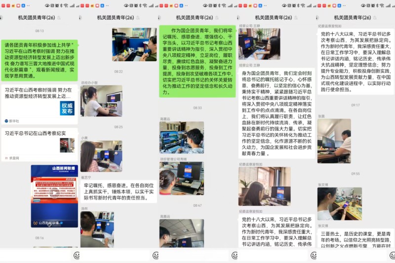 8月11日,機關團支部開展“以學鑄魂提本領 以行踐知擔使命”線上共學活動。活動中,團員青年深學細悟習近平總書記考察山西重要講話重要指示精神,結合新聞報道進行交流討論。此次活動激勵團員青年牢記囑托、立足崗位、真抓實干,以更高標準、更實作風融入到工作提質、攻堅克難與志愿服務中。