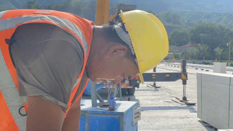 正處在沖刺階段的凈因橋建設工程施工現(xiàn)場,溫度計指針一次次沖向極限刻度。然而,橋梁腹拱深處、高聳的橋墩上,八公司參建人員的身影從未缺席,頂著熱浪堅守崗位,在高溫“烤”驗中為橋梁通車爭分奪秒,汗水浸透的工服濕了又干,無聲訴說著這場夏日攻堅的艱辛。午后的凈因橋施工現(xiàn)場,測量員肩扛儀器,在鋼筋叢林中深一腳淺一腳地挪動,額頭前的汗珠順著臉頰滑到下巴,“啪嗒”一聲滴落在儀器顯示屏上,“差1毫米都不行”,手指在儀器上快速操作,又俯身用游標卡尺反復校準數(shù)據(jù),“零誤差”已成為他們的工作準則。質(zhì)檢員正握著輕型觸探儀,將探桿對準一個個測點,“哐哐”的錘擊聲在熱浪中回蕩,隨后又轉(zhuǎn)身來到材料堆放區(qū),對新進場的構件逐一核驗,動作利落且專注,而被汗水浸透的工裝、被曬得黝黑的皮膚,都是沖刺路上最鮮活的勛章。在這片被烈日炙烤的工地上,全體施工人員擰成一股繩,用“戰(zhàn)高溫、斗酷暑”的拼勁,讓這座橋梁在拼搏與汗水的滋養(yǎng)下,一步步邁向勝利通車的時刻。