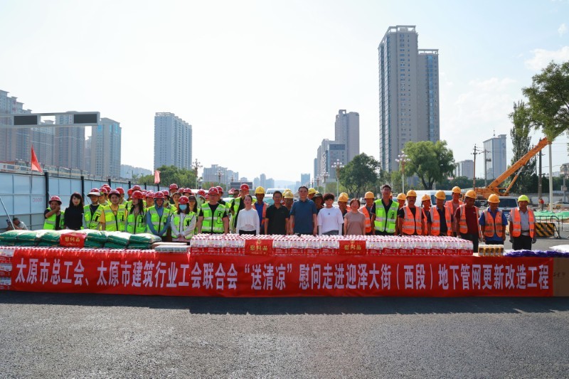 8月14日,太原市建筑行業(yè)工會(huì)聯(lián)合會(huì)“送清涼”慰問(wèn)活動(dòng)走進(jìn)太原市政集團(tuán)承建的迎澤大街(西段)地下管網(wǎng)更新改造工程項(xiàng)目現(xiàn)場(chǎng)。