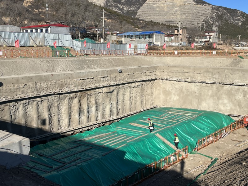 項目部組建專項指揮工作組,進行全方位、全流程精細化管理,重點防止出現(xiàn)混凝土水化熱過高、內(nèi)外溫差較大,導致結構產(chǎn)生裂縫的情況。前期重點優(yōu)化混凝土設計配合比,從原材優(yōu)選入手,減少混凝土水化熱影響;中期采用分層分段澆注方式,保證混凝土澆筑連續(xù)性,嚴格把關鋼筋及模板拉桿連接、冷卻水管位置等細節(jié)質(zhì)量,確保澆筑質(zhì)量達標;同時在混凝土內(nèi)部及表面布置測溫點,及時觀察記錄溫度變化,為澆筑施工提供堅實保障;后期進行毛毯覆蓋灑水養(yǎng)生、內(nèi)設循環(huán)冷卻管路,嚴格控制水的流量流速,流量范圍
