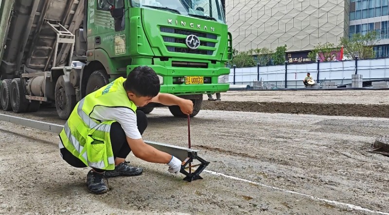“以工匠精神,打造城市街道的靚麗名片”。項(xiàng)目部對(duì)所有進(jìn)場(chǎng)花崗巖板材進(jìn)行逐塊檢驗(yàn),確保板材表面平整度、缺陷指標(biāo)符合設(shè)計(jì)要求,讓石材自帶“高顏值”。施工中,施工人員嚴(yán)格控制混凝土基層表面平整度偏差,確保壓實(shí)度達(dá)到95%以上;鋪貼階段采用“試鋪—校正—精鋪”的工藝流程,嚴(yán)格按配比配制干硬性水泥砂漿;鋪貼時(shí)使用橡皮錘從板材中心向四周均勻輕擊,確保砂漿飽滿密實(shí),相鄰板材高差控制在正負(fù)1毫米以內(nèi),接縫寬度保持均勻一致。鋪裝完成后利用專用填縫劑進(jìn)行嵌縫處理,并實(shí)施保濕養(yǎng)護(hù),確保鋪裝層達(dá)到平整美觀、堅(jiān)固耐用的質(zhì)量要求。