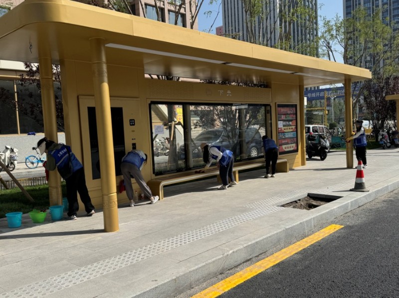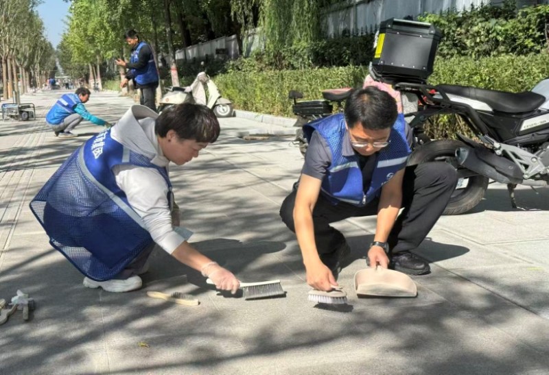 活動(dòng)自9月4日起為期六天,覆蓋迎澤大街(西段)全線,重點(diǎn)圍繞附屬設(shè)施清潔與道路精細(xì)化維護(hù)展開?;顒?dòng)中,身著統(tǒng)一藍(lán)色“太原市政集團(tuán)”馬甲的志愿者們,手持長柄擦洗器、水桶、抹布、鏟刀、掃帚等工具,對(duì)道路兩側(cè)公交站臺(tái)、路燈基地、護(hù)欄、照明燈桿等設(shè)施進(jìn)行系統(tǒng)清理與擦洗;同步推進(jìn)地磚灌縫精細(xì)化維護(hù)作業(yè),通過專業(yè)操作,確保每一條裂縫都“嚴(yán)絲合縫”,有效提升路面耐用性與通行舒適度,以實(shí)際行動(dòng)為市民出行安全與舒適保駕護(hù)航;同時(shí),志愿者專門對(duì)道路沿線的石頭字景觀展開描金作業(yè),細(xì)刷蘸取金色涂料,一筆一畫精心描摹,成為主干道上一道兼具文化氣息與視覺美感的獨(dú)特風(fēng)景。