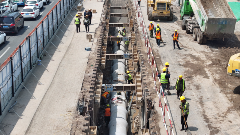 太原市政集團堅決扛牢使命擔當,強化統(tǒng)籌、多方聯(lián)動,想盡一切辦法,克服一切困難,全面對標看齊“迎澤標準”,堅持以全局觀念和系統(tǒng)思維謀劃推進項目建設(shè),采用半幅封閉施工、平行流水作業(yè)方式,克服工程體量大、施工內(nèi)容繁重、建設(shè)工期緊張等困難與挑戰(zhàn),一體推進道路、管線、照明、沿線景觀等建設(shè)任務(wù)。項目伊始,規(guī)劃“導航圖”,研討節(jié)點安排、工序銜接、資源配置等關(guān)鍵環(huán)節(jié),制定十余套專項施工方案,優(yōu)化組織設(shè)計,形成管理閉環(huán);繪制“進度表”,建立分級負責、動態(tài)調(diào)整的進度管控體系,提升9個工區(qū)自主管理效能,錨定工期目標,加快施工效率。施工過程中,掃清“攔路虎”,采用鋼板樁支護、分層開挖、放坡開挖工藝,克服地下管線復雜、開挖深度大、地下水高等難點,確保管網(wǎng)升級與地鐵運營和諧并行;保持“攻堅態(tài)勢”,針對重難點部位,提前制定專項方案,全部進行技術(shù)交底,著重加強安全、質(zhì)量管控,形成高效施工態(tài)勢。注重以人為本,提升“施工溫度”,細化各項便民、利民措施,最大限度降低對市民日常生活的影響,保障通行需求;擦亮“市政名片”,開展道路清理志愿服務(wù)活動,用實際行動為城市“美容”,展現(xiàn)國企擔當。