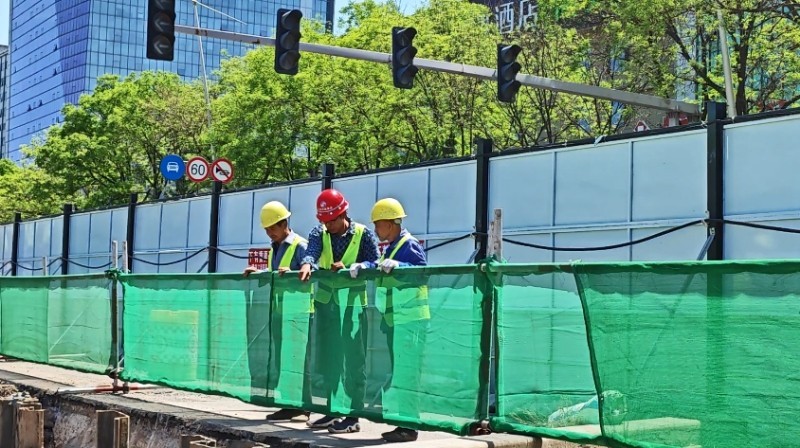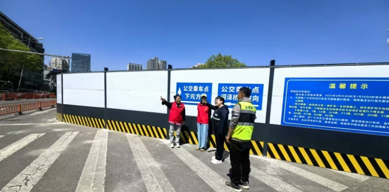 施工以來,集團(tuán)公司全程安排專人值守地鐵口交通導(dǎo)行,多舉措升級(jí)現(xiàn)場(chǎng)安全防護(hù)設(shè)施——開辟行人安全通道,協(xié)調(diào)劃定“公交專用通道”,在井蓋四周設(shè)置緩坡與明黃警示帶,為圍擋加裝柔和燈帶……以細(xì)微處的貼心舉措,實(shí)現(xiàn)“施工便民不擾民”。