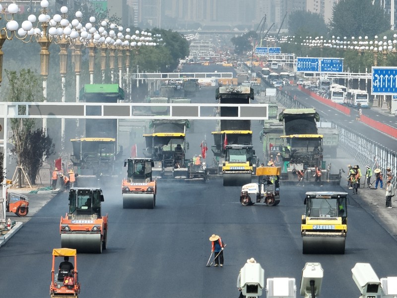 面對全長4.3公里的施工戰(zhàn)線,租賃公司和路面公司展現(xiàn)了高度的專業(yè)協(xié)作與責(zé)任擔(dān)當(dāng)。租賃公司科學(xué)調(diào)度大量大型機(jī)械設(shè)備,包括銑刨機(jī)、壓路機(jī)和攤鋪機(jī)等,按照施工計劃分批次進(jìn)場,確保了“分段流水、平行作業(yè)”模式的高效運轉(zhuǎn)。通過精準(zhǔn)匹配機(jī)械供應(yīng)與作業(yè)面規(guī)劃,他們?yōu)楣こ烫峁┝藞詫嵉脑O(shè)備保障,同時嚴(yán)格執(zhí)行機(jī)械操作安全規(guī)程,有效管控高風(fēng)險作業(yè)環(huán)節(jié)。在機(jī)械設(shè)備充足的同時,路面公司聚焦道路施工的質(zhì)量與精細(xì)化管理。在完成地下管網(wǎng)改造工程后,他們迅速推進(jìn)路面工程施工進(jìn)度,實施水穩(wěn)、瀝青鋪筑工作。面對高溫和雨季的持續(xù)挑戰(zhàn),路面公司施工人員堅守一線,嚴(yán)格把控每道工藝,以精益求精的施工質(zhì)量和爭分奪秒的施工速度圓滿完成施工任務(wù),完成全線水穩(wěn)和瀝青的攤鋪工作。租賃公司和路面公司通過與施工單位的緊密配合,展現(xiàn)了同心協(xié)力、協(xié)同作戰(zhàn)的施工風(fēng)采,助力迎澤大街(西段)煥新升級,彰顯了太原市政集團(tuán)的專業(yè)水準(zhǔn)與責(zé)任使命。