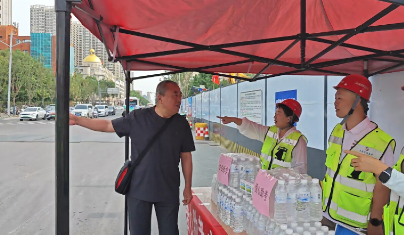 施工過程中,太原市政集團(tuán)作為主要施工單位,積極統(tǒng)籌協(xié)調(diào),主動與園林、電力、自來水、熱力等平行施工單位溝通,在全力推進(jìn)工程進(jìn)度的同時,為各參建單位留好施工作業(yè)面,合理安排平行、交叉作業(yè),確保工程順利推進(jìn),跑出施工“加速度”。為妥善平衡民生保障與工程建設(shè)雙重需求,太原市政集團(tuán)主動擔(dān)當(dāng)、積極作為,主動聯(lián)動交通、城管等部門,采取多項舉措,避免影響周邊居民的正常生活。在施工中遵循“修路不添堵”原則,精心制定交通組織方案,設(shè)置應(yīng)急通道、便民通道和低噪音設(shè)備,并安排交通協(xié)管員在地鐵口等關(guān)鍵部位現(xiàn)場指揮、引導(dǎo)行人,為市民出行提供便利條件,將“讓市民少繞一米路,少踩一個水坑”融入深夜巡查便道安全的腳步,化作施工與民生和諧共生的溫暖注腳;實施“半幅施工+分段施工+動態(tài)導(dǎo)改”策略,與交警部門合作,優(yōu)化交通信號燈配時,有效緩解施工對市民出行的影響;中高考期間,積極開展“為夢護(hù)航 愛心助考”志愿服務(wù)活動,全線工地按下“靜音鍵”,在關(guān)鍵路口設(shè)立助考點,配備礦泉水、防暑降溫藥品等,并為考生開放綠色通道,以實際行動助力中高考;在施工現(xiàn)場設(shè)置安全警示標(biāo)志和施工公告牌,及時告知市民施工進(jìn)展和注意事項,增強市民對施工的理解和支持;組織施工人員進(jìn)行城市家具的及時進(jìn)場和質(zhì)量檢驗工作,在全線開展城市家具安裝作業(yè),將一批兼具現(xiàn)代風(fēng)格與太原特色的公交站臺、休閑座椅、分類垃圾箱等設(shè)施安裝到位,這些融合功能與美學(xué)的城市家具,已成為迎澤大街沿線的新亮點,不僅提升了城市空間的品質(zhì),更展現(xiàn)出太原深厚的人文關(guān)懷與現(xiàn)代城市風(fēng)貌。全體施工人員以高度的責(zé)任感和使命感,將品質(zhì)與關(guān)懷融入到每一個細(xì)節(jié)中,用實際行動詮釋了“以人為本,和諧共建”的施工理念。