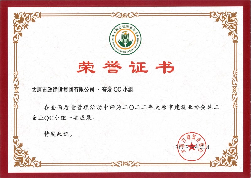 2022年太原市建筑業(yè)協(xié)會施工企業(yè)QC小組二類成果_奮發(fā)QC小組